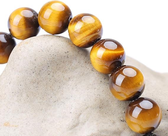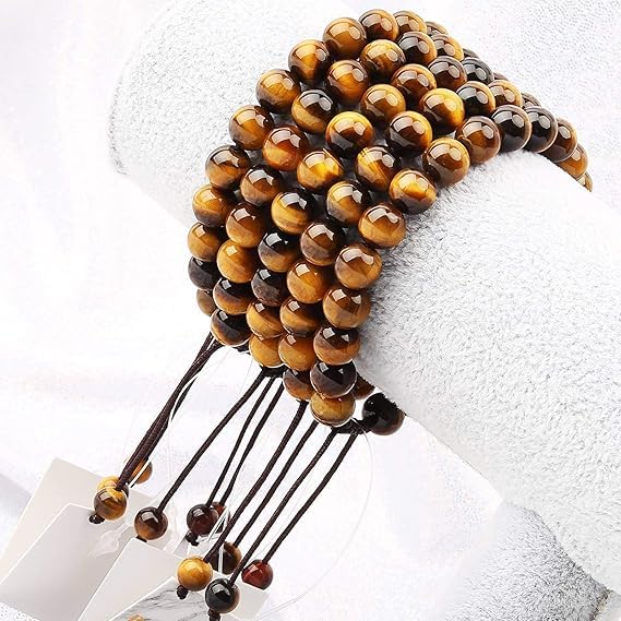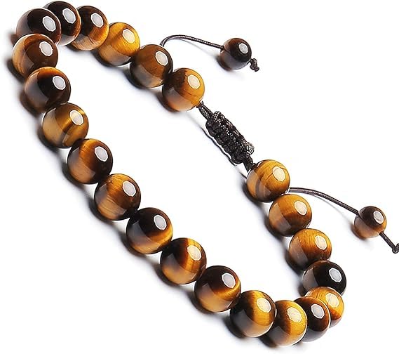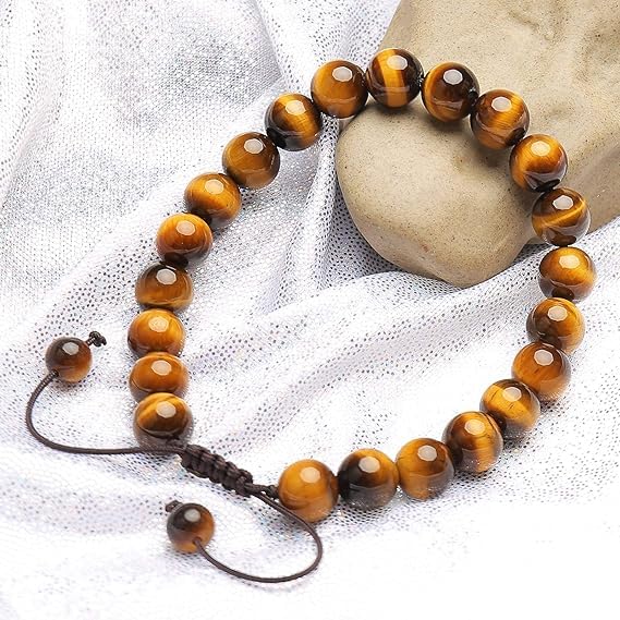 Generic - سوار طاقة من الأحجار الكريمة الطبيعية 8 ملم، أساور من الكريستال الكوارتز شبه الكريمة بحبل مضفر لتخفيف التوتر والشفاء بتقنية الريكي مكرمية للجنسين من M.A.S، حجر كريم، بني (عين النمر الكلاسيكي)