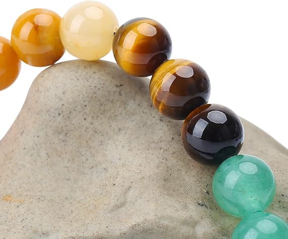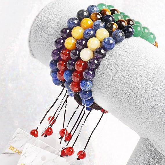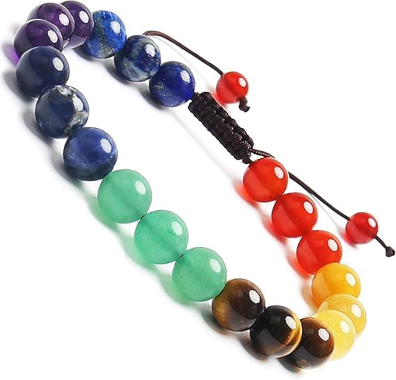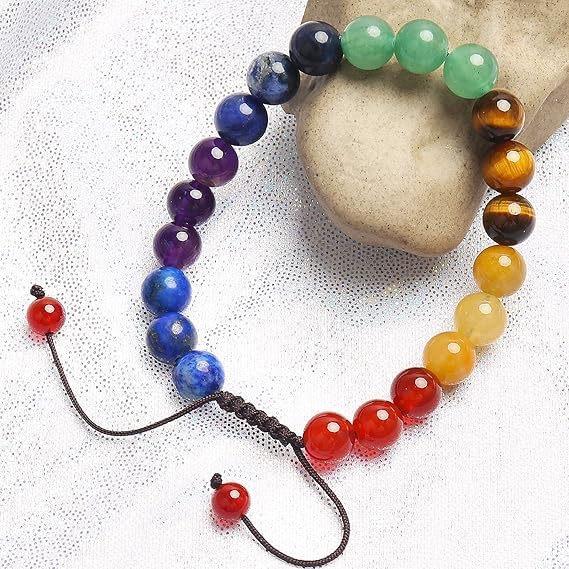 Generic - أساور طاقة من أحجار كريمة طبيعية مقاس 8 ملم للجنسين لتخفيف التوتر والعلاج بطاقة الريكي بتصميم مكرامي، مزينة بأحجار كريمة تمثل 7 شاكرات، مصنوعة من فولاذ مقاوم للصدأ من ام ايه اس