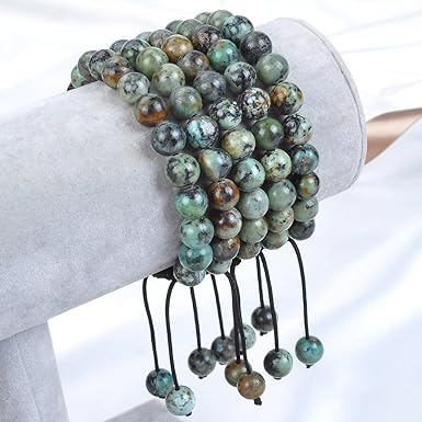 Generic - سوار تركواز افريقي من ام ايه اس، خرز مالا للمعصم، كريستالات علاجية، مجوهرات شاكرا، بدايات جديدة - التوازن العاطفي - النمو الشخصي (تركواز افريقي، 8 ملم)