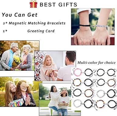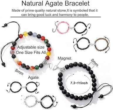 Generic - اساور متطابقة من خرز العقيق من ام ايه اس، سوار مغناطيسي بدلاية جذب متبادل، مجوهرات للنساء والرجال، مجموعة هدايا مجوهرات ابدية للصداقة، خرز 8 ملم وقابل للتعديل، عقيق