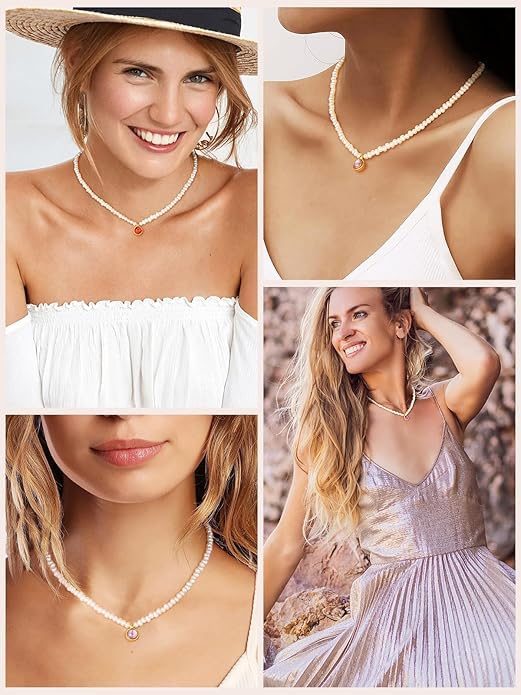 Generic - عقد من اللؤلؤ الباروكي للنساء من ام ايه اس، عقد من اللؤلؤ الابيض، اكسسوارات مجوهرات اللؤلؤ