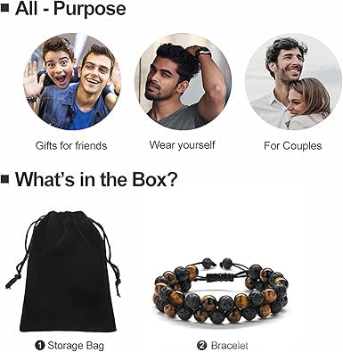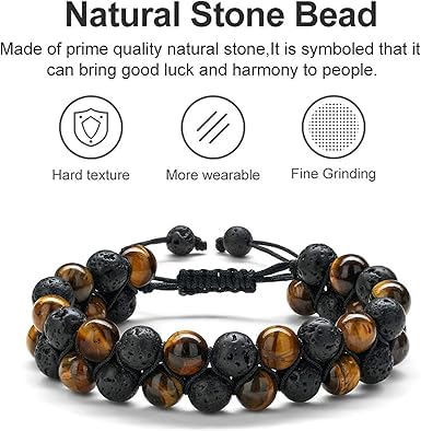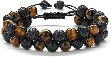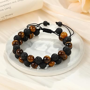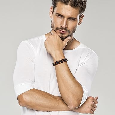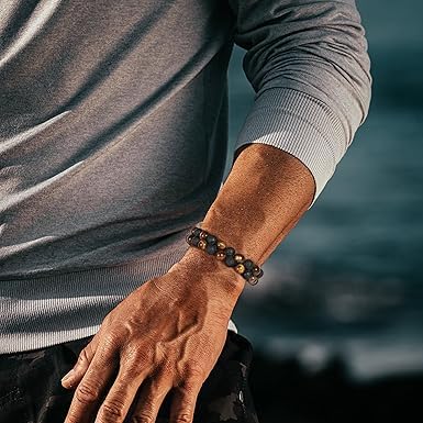 Generic - اساور خرز للرجال من ام ايه اس، اساور لافا روك للرجال، اساور عين النمر للرجال، اساور خرز عين النمر الاصفر، هدايا للاب والزوج والصديق