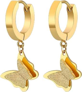 Generic - اقراط متدلية من الستانلس ستيل مطلية بالذهب عيار 18 قيراط من ام ايه اس، اقراط متدلية على شكل فراشة بلورية، اقراط على شكل فراشة صغيرة، اقراط ذهبية متدلية للنساء والفتيات