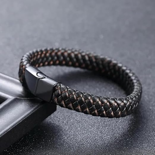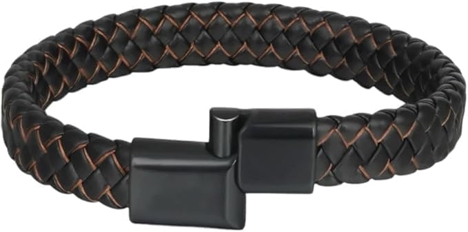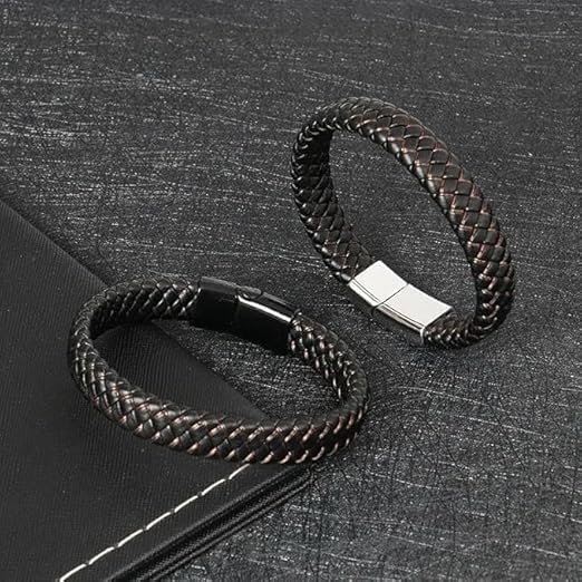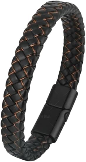 Generic - سوار جلد بني متعدد الطبقات للرجال من ام ايه اس، اساور جلدية بمشبك مغناطيسي، سوار مضفر متعدد الطبقات للرجال