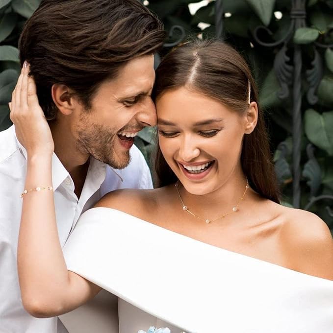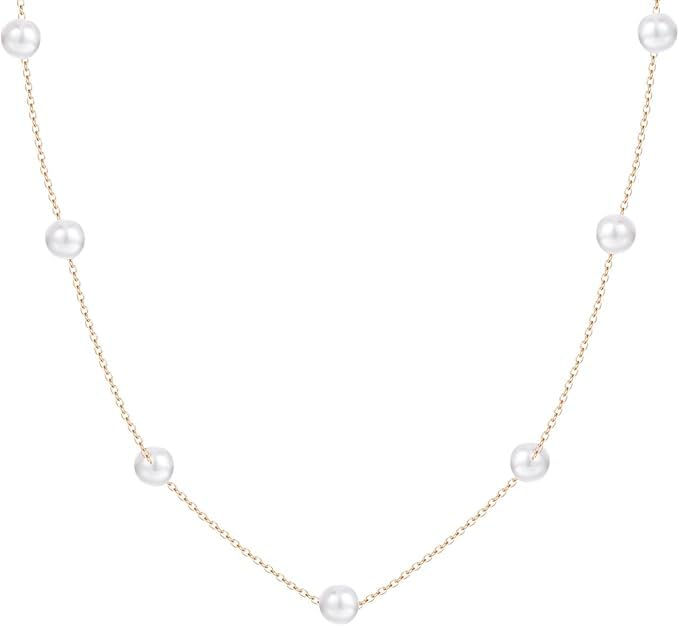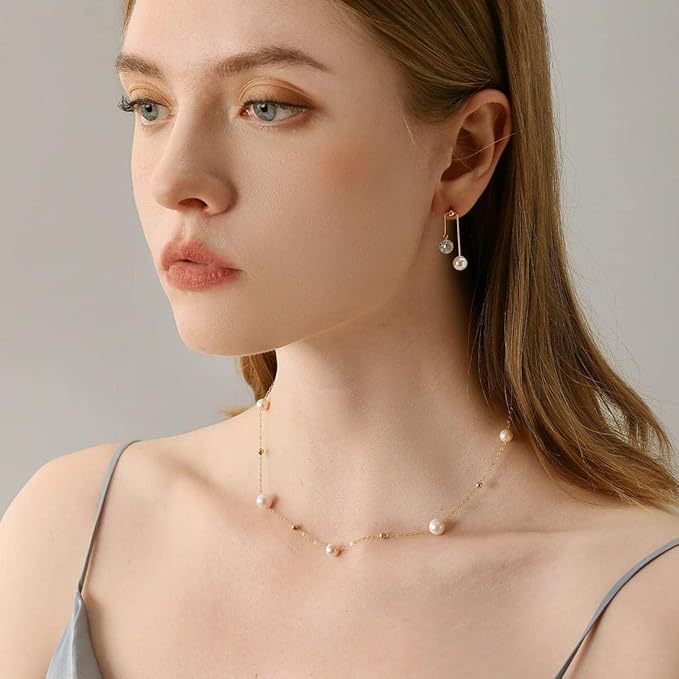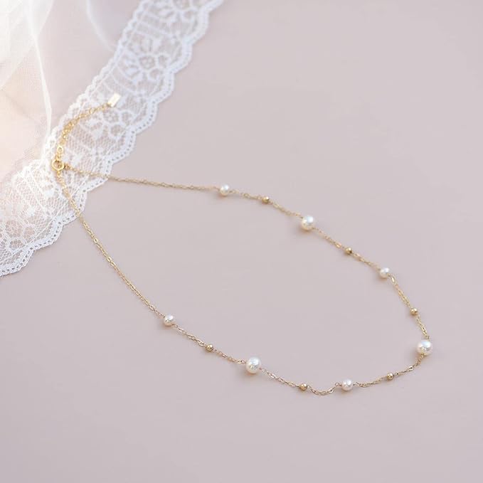 Generic - عقد انيق للنساء من ام ايه اس مطلي بالذهب عيار 14 قيراط، عقد مصنوع يدويا من لؤلؤ المياه العذبة المستزرع، مجوهرات يومية للهدايا