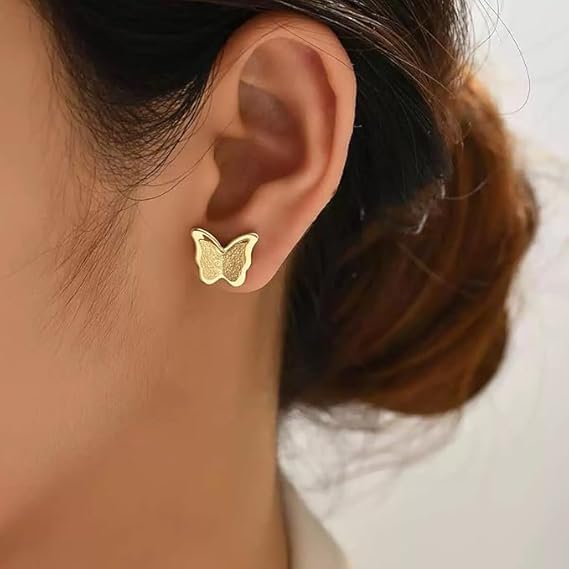 Generic - اقراط من الستانلس ستيل المطلي بالذهب عيار 18 قيراط من ام ايه اس، اقراط بانك للنساء على شكل فراشة غير لامعة (ذهبي)