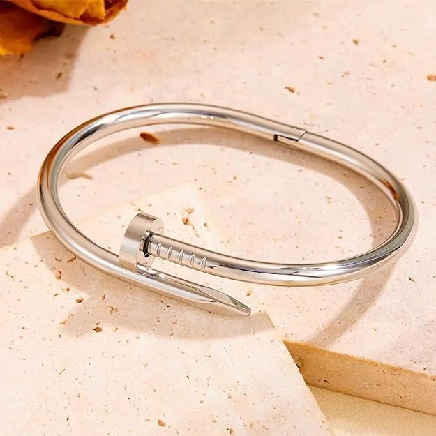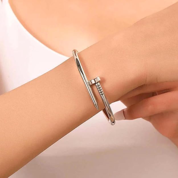 Generic - سوار عصري من ام ايه اس - ستانلس ستيل 316L مطلي بالذهب عيار 18 قيراط - تصميم مسمار مفتوح هدية انيقة