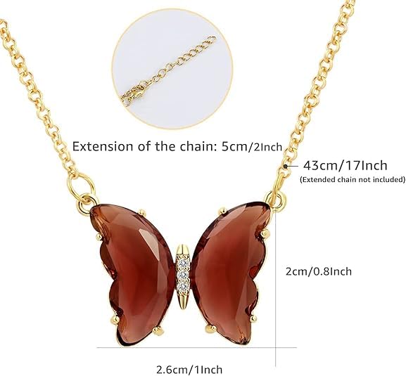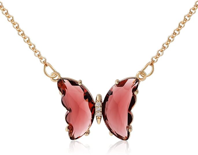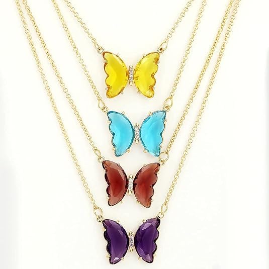 Generic - عقد بدلاية على شكل فراشة من الذهب عيار 18 قيراط مرصع بالزركونيا المكعب، قلادة فراشة كريستال لطيفة للنساء من ام ايه اس، K00