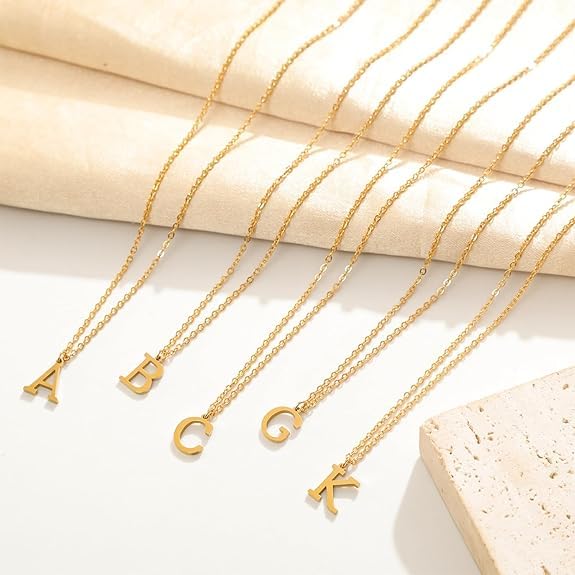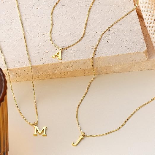 Generic - سلسلة ذهبية بالحرف الأول من الاسم للنساء، مصنوعة من الفولاذ المقاوم للصدأ بطلاء ذهبي عيار 18 قيراط مع دلاية رقيقة بحروف من A إلى Z من ام. اس. ايه