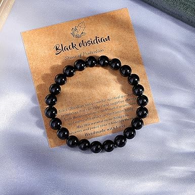 Generic - سوار كريستال علاجي للنساء والرجال، اساور خرز من الاحجار الطبيعية 8 ملم، مجوهرات هدايا عيد الميلاد، سوار قابل للتمدد من الاحجار الكريمة المستديرة من ام ايه اس