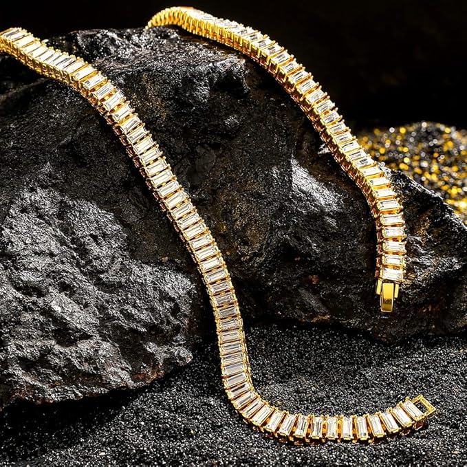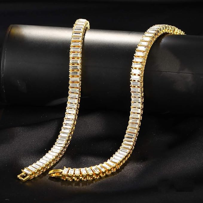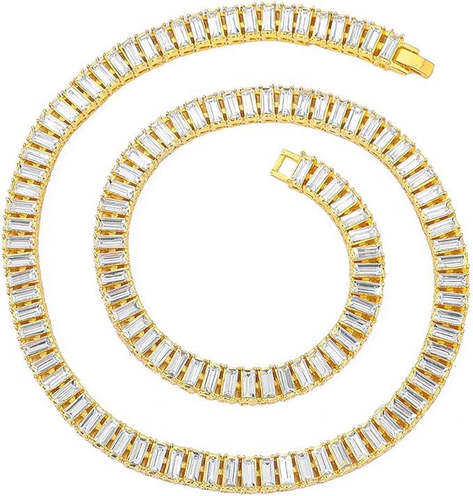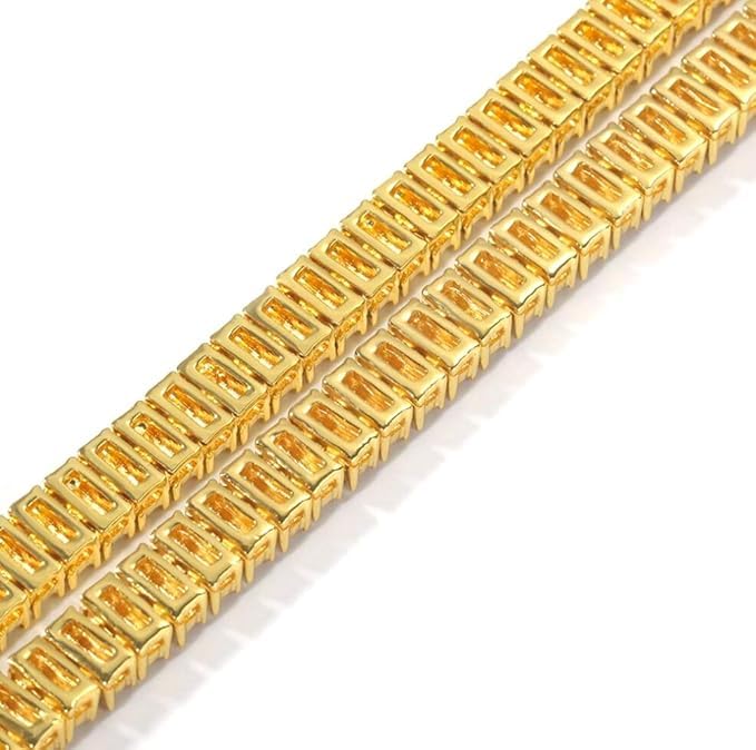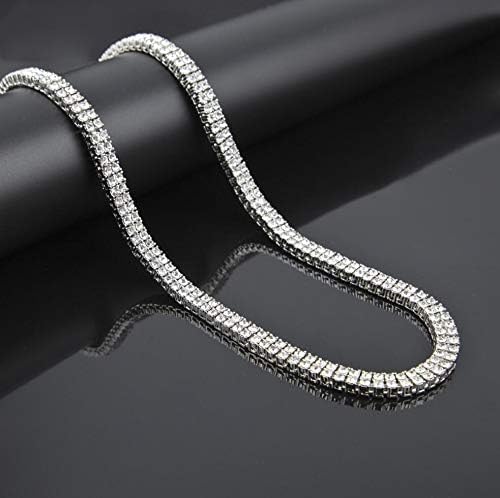 Generic - سلاسل عنق تينيس المزينة بالألماس باللونين الفضي والذهبي على نمط الهيب هوب بتصميم باجيت مزدوج للرجال من ام ايه اس، تصميم صفين، لون فضي، مقاس 18