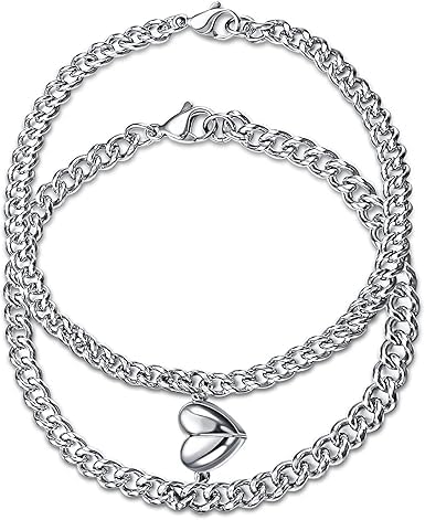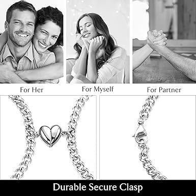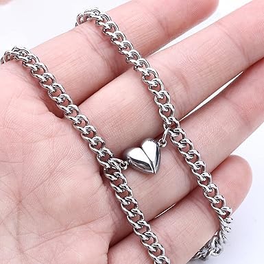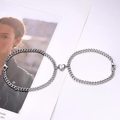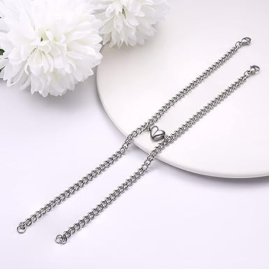 Generic - طقم أساور للأزواج المتطابقة المتبادلة مع دلاية بتصميم قلب للرجال والنساء من ام ايه اس، عبوة من قطعتين