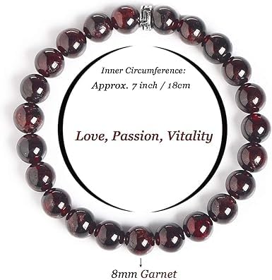 Generic - سوار من الاحجار الكريمة العلاجية الطبيعية للرجال والنساء من ام ايه اس، 8 ملم، سي جارنيت - ستانلس ستيل