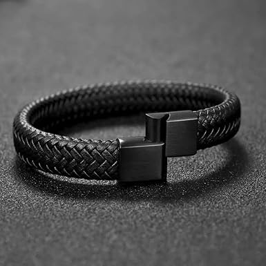 Generic - سوار جلد مضفر ومتعدد الطبقات بإغلاق مغناطيسي للرجال، لون أسود من M.A.S
