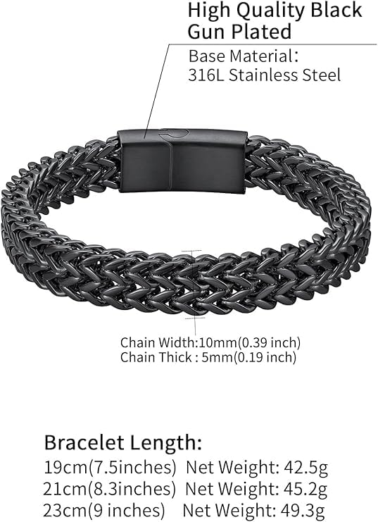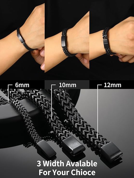 Generic - M.A.S Mens Bracelet with Sturdy Clasp 6mm/10mm/12mm Width Bracelets for Men Jewelry Valentines day Birthday Gifts for Dad Husband, 7.48 Inches, no gemstone