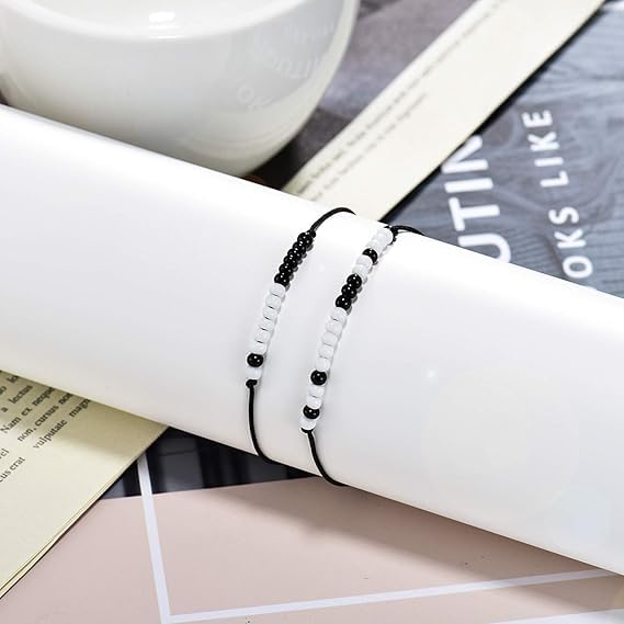 Generic - أساور مورس كود مجموعة مكونة من سوارين فريدين مصنوعة يدويًا برسالة سرية مجوهرات للنساء والرجال والأولاد والبنات من M.A.S، بلاستيك 25.40 سم