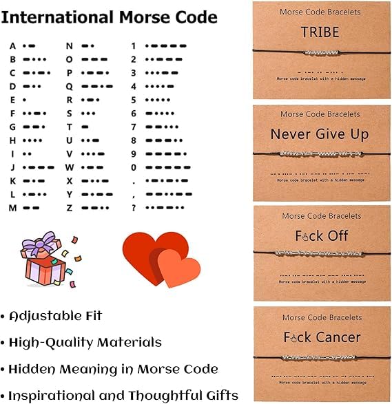 Generic - اساور مورس كود للنساء والرجال من ام ايه اس، هدايا ملهمة للاصدقاء المقربين، مجوهرات مورس كود للحفلات واعياد الميلاد، خليط معدني، خليط معدني