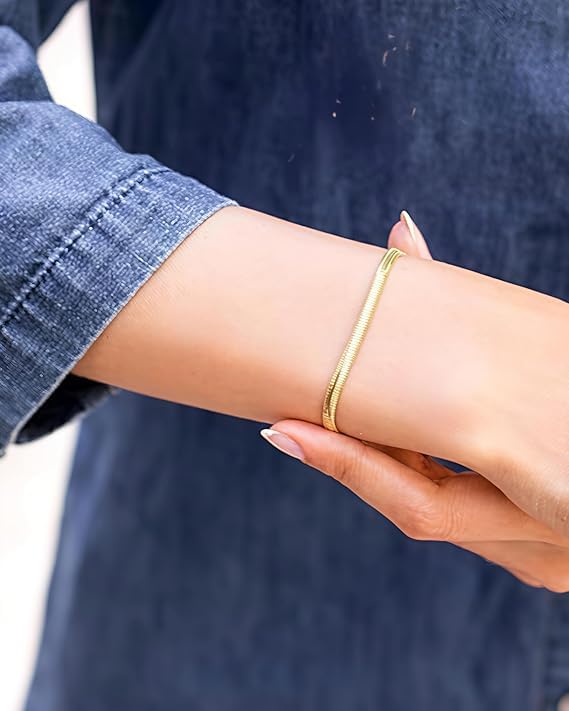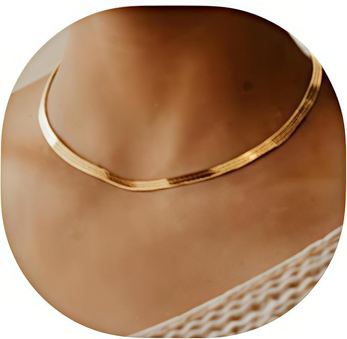 Generic - عقد بسلسلة ثعبان من الستانلس ستيل مطلي بالذهب عيار 18 قيراط 5 ملم من ام ايه اس ام تي، مجموعة مجوهرات بياقة مكتنزة بسيطة قابلة للتعديل