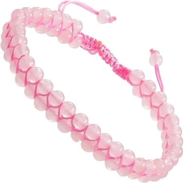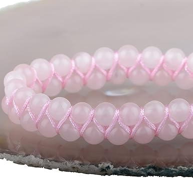 Generic - سوار مكرامي كريستالات شاكرا طبيعية علاجية من ام ايه اس، سوار يوجا مزدوج الطبقات من الاحجار الكريمة للتامل والاسترخاء وتخفيف القلق للجنسين (كوارتز وردي، 6 ملم)