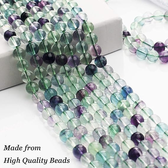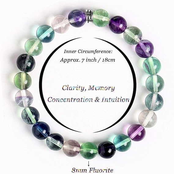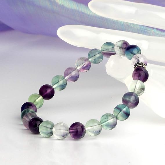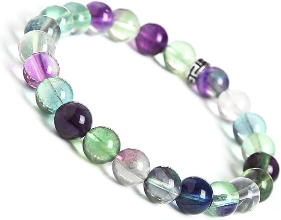 Generic - سوار من الاحجار الكريمة العلاجية الطبيعية من ام ايه اس - 8 ملم - فلوريت - ستانلس ستيل