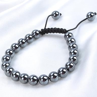 Generic - اساور مكرمية من الاحجار الكريمة الطبيعية العلاجية للجنسين من ام ايه اس، اساور مكرمية قابلة للتعديل، 6 ملم، حجر، حجر هيماتيت