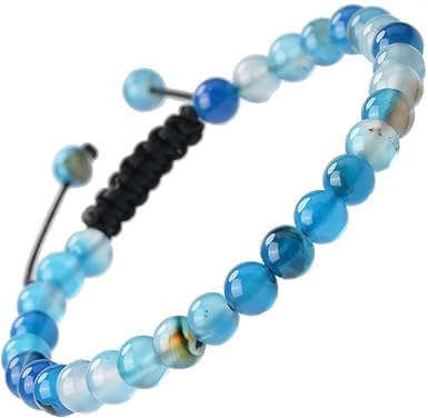 Generic - اساور مكرمية من الاحجار الكريمة الطبيعية العلاجية للجنسين من ام ايه اس، اساور مكرمية قابلة للتعديل 8 ملم (ازرق عقيق، 8 ملم)