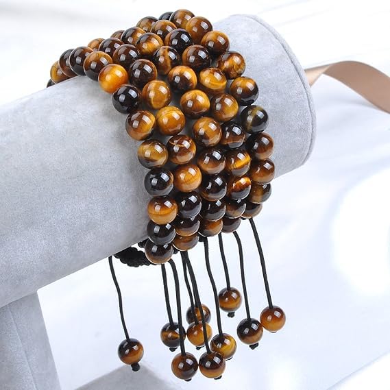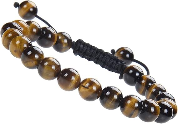 Generic - اساور مكرمية من الاحجار الكريمة الطبيعية العلاجية للجنسين من ام ايه اس، اساور مكرمية قابلة للتعديل 8 ملم (عين النمر، 8 ملم)