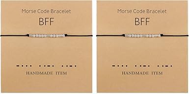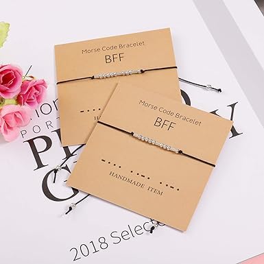 Generic - سوار بخرز شفرة مورس من قطعتين على حبل حريري من ام ايه اس بيكود، سوار فضي رمز سري، مجوهرات هدية، سوار مورس كود هدية لأفضل صديق