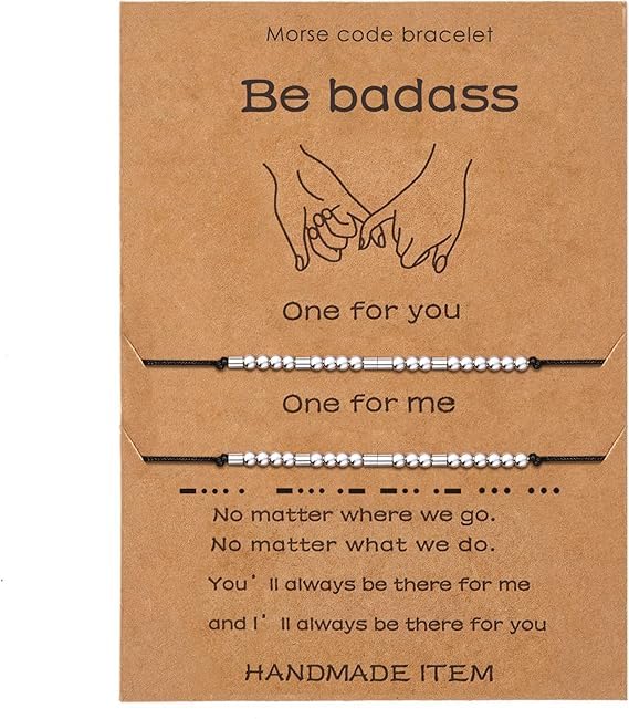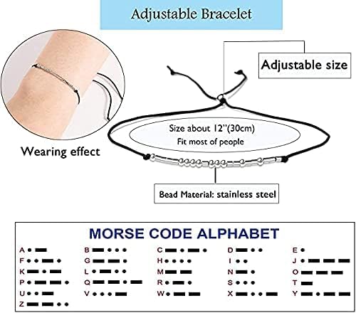 Generic - سوار بينكي بروميس متطابق زوجي بنظام شفرة مورس من الفولاذ المقاوم للصدأ وحجر العقيق للنساء من ام ايه اس، بي باديس، 2 قطعة