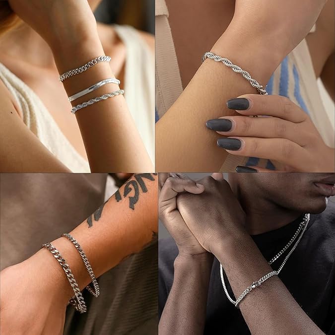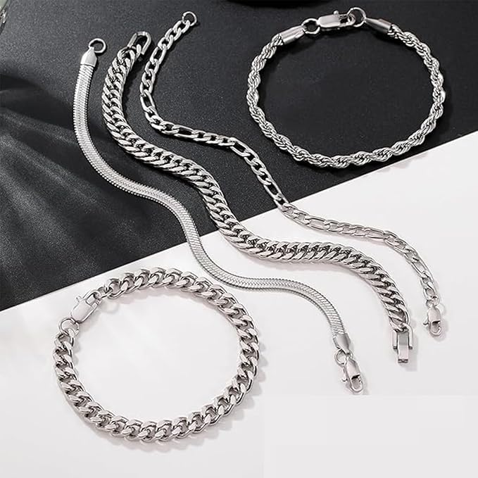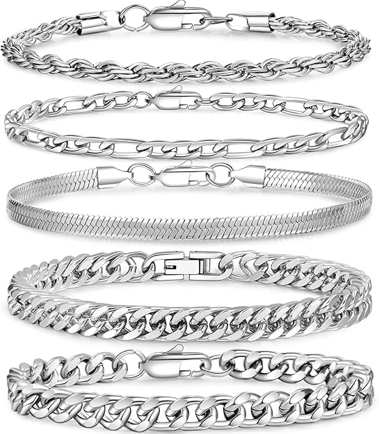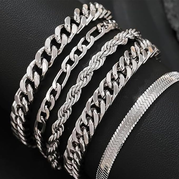 Generic - مجموعة M.A.S QQUQQU من 5 أساور فضية للرجال، أساور كلاسيكية من الفولاذ المقاوم للصدأ، سوار هوب رابر فضي، مجموعة رجالية مثالية لعيد الميلاد ويوم الحب وعيد الميلاد