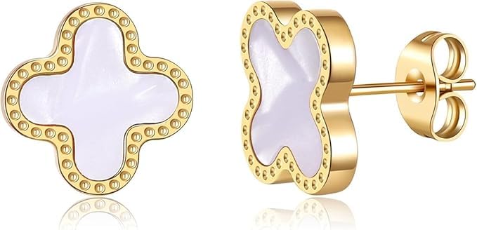 Generic - اقراط من الستانلس ستيل للنساء من ام ايه اس، اقراط برسيم باربع اوراق برسيم، اقراط متدلية بسيطة هدايا مجوهرات للنساء (ابيض)