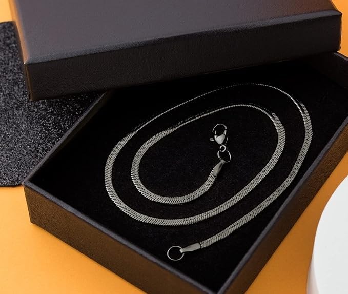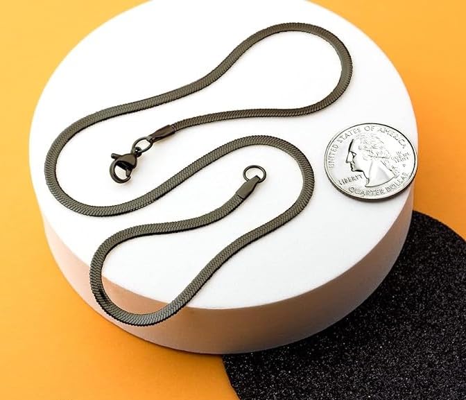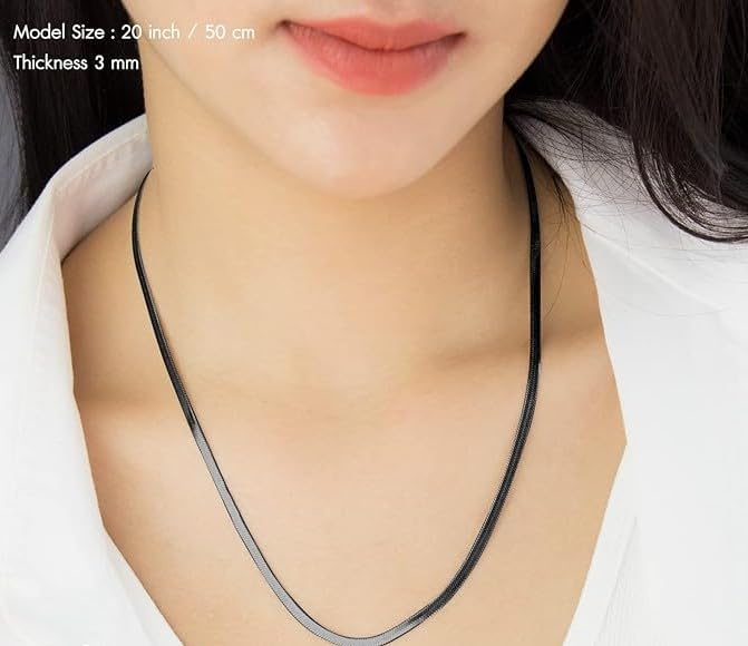 Generic - سلسلة متعرجة من الستانلس ستيل للنساء من ام ايه اس، قلادة ثعبان مسطحة للسيدات، قلادة سلسلة ثعبان للرجال، قلادة سلسلة انيقة