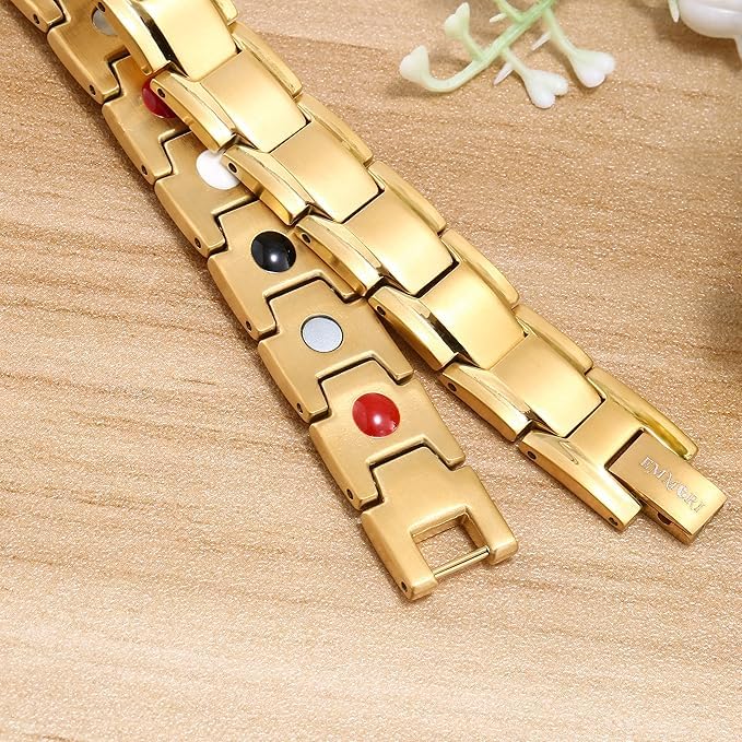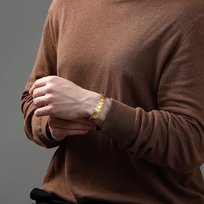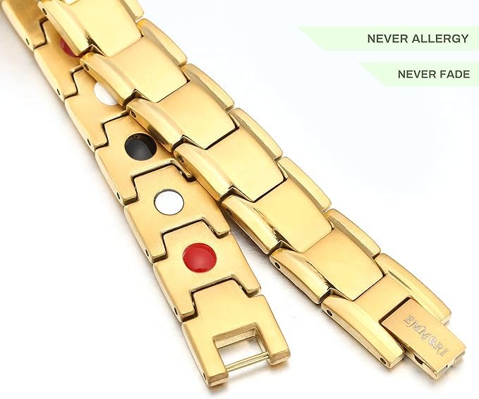 Generic - سوار مغناطيسي من الستانلس ستيل للرجال من ام ايه اس بصف مزدوج و4 عناصر مغناطيسية قوية للغاية لتوازن الطاقة (ذهبي)