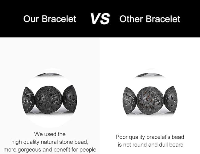 - سوار موزع الزيوت العطرية: يمكن لحجر اللافا الصخري امتصاص الزيوت العطرية المفضلة لديك جيدًا، فقط ضع القليل من الزيوت العطرية المفضلة لديك على سوار حجر اللافا الصخري، وستدوم الرائحة طوال اليوم على الحجر البركاني. تساعد على التأمل والشفاء. أو كهدية لعائلتك وأصدقائك وما إلى ذلك.