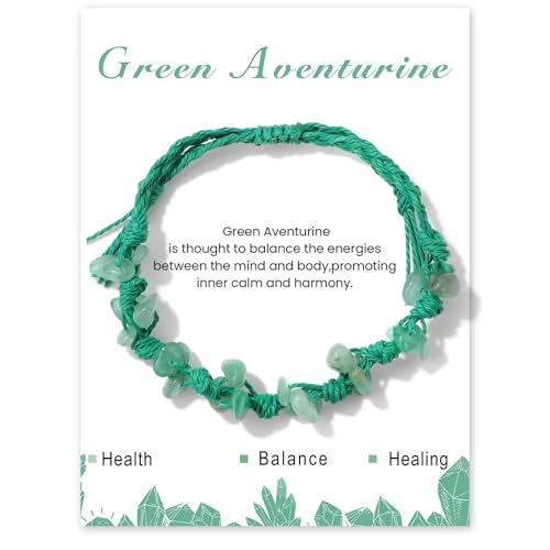 Generic - سوار مضفر فريد من نوعه مع حجر طبيعي غير منتظم جديد (افينتورين اخضر) سوار حبل مضفر للنساء، عصري. افينتورين اخضر، قطعة واحدة