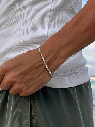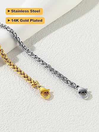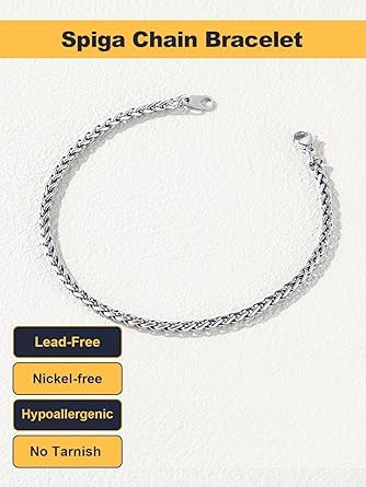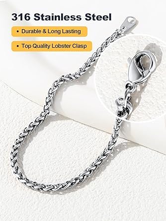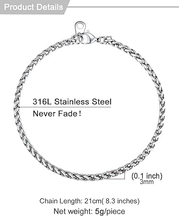 Generic - سوار سلسلة بتصميم سنابل القمح من الفولاذ المقاوم للصدأ، سوار متين للرجال والنساء من ام ايه اس، مقاس 21 سم
