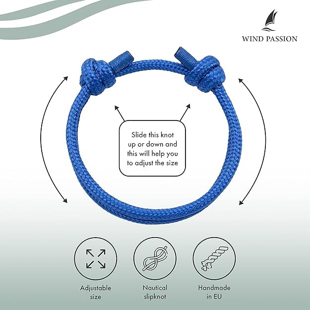 Generic - سوار حبل نايلون بحري ويند باسيو من ام ايه اس، سوار ازرق للبالغين من الجنسين، حبل نايلون مقاوم للماء لركوب الامواج وحماية العاطفة والقوة وتعويذة الحظ الجيد، سلسلة الطاقة من مصير الحب