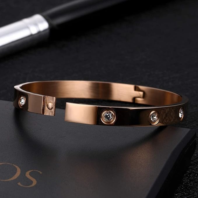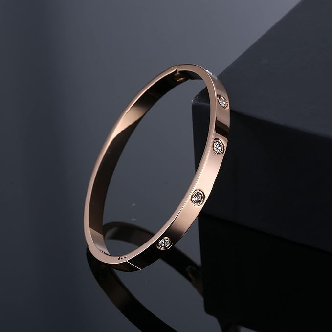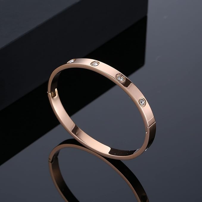 Generic - سوار من الستانلس ستيل للنساء من ام ايه اس، سوار كريستال مع مفصل مكعب من الزركون مجوهرات مجوهرات بيضاوية للكريسماس وعيد الحب وعيد الميلاد للنساء