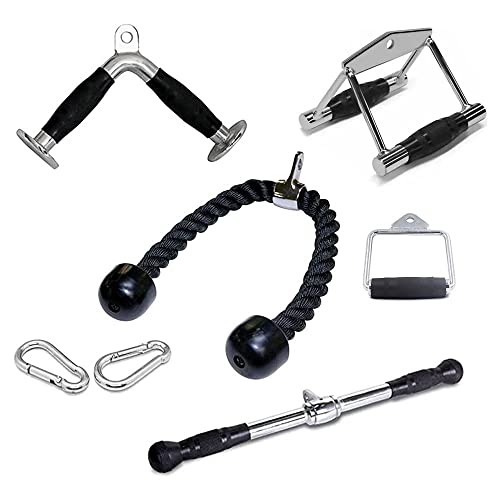 M ART - عبوة كومبو بمقبض لصالة الالعاب الرياضية من ام ارت / حبل ثلاثية الرؤوس / مقبض على شكل حرف V / قضيب ضغط ثلاثي الرؤوس للاسفل وقضيب تجديف جالس مع قفلين على شكل حرف S بقضبة إحكام