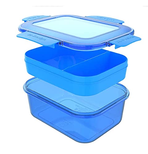 - لانش بوكس سعة 2.1 لتر مع صينية بلون أزرق مع مشابك زرقاء من ام - ديزاين