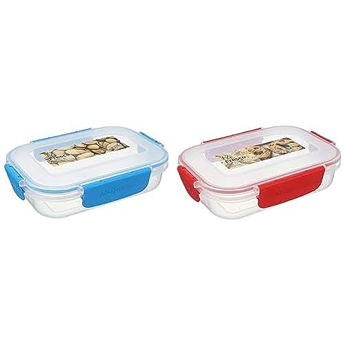 M-DESIGN - علبة حفظ طعام من ام ديزاين 600 مل - شفاف وأزرق + صندوق تخزين - وأحمر