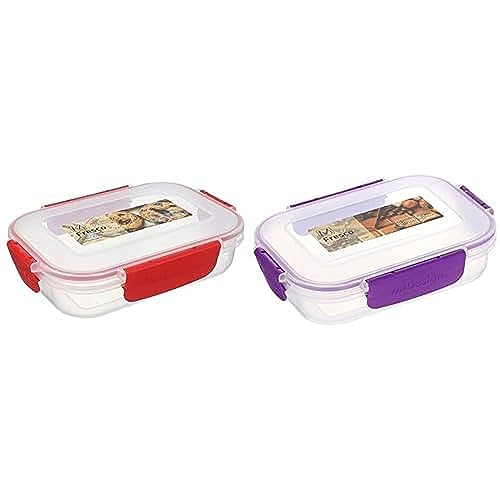 M-DESIGN - علبة حفظ طعام 600 مل شفاف واحمر + وبنفسجي من ام ديزاين