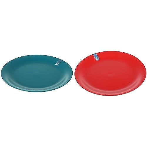 M-Design - طبق عشاء 26 سم من لايف ستايل - ازرق مخضر + - احمر بورسلين