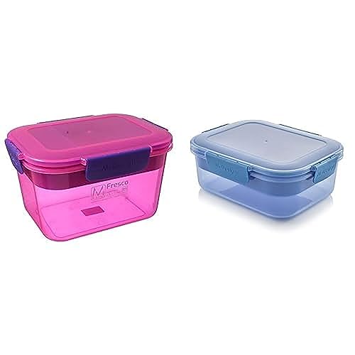 M-DESIGN - لانش بوكس بسعة 2.3 لتر - وردي وبنفسجي + 2.1 مع صينية ومشابك زرقاء - أزرق من ام ديزاين