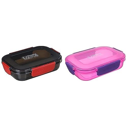 M-DESIGN - لانش بوكس بسعة 600 مل بلون اسود واحمر + لانش بوكس بسعة 600 مل - زهري وارجواني من ام ديزاين