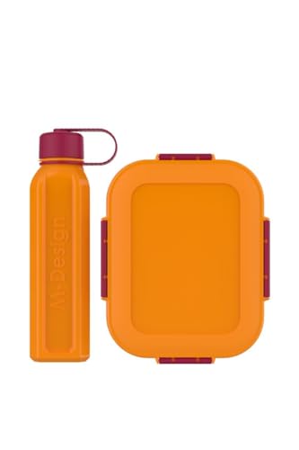 M-Design - لانش بوكس بسعة 2.1 لتر مع زجاجة 800 مل من ام ديزاين لون برتقالي فوشيا