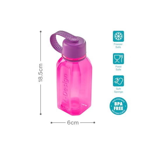 M-Design - زجاجة مياه سعة 0.5 لتر من ام-ديزاين - عبوة من 3 قطع - لون وردي/أرجواني