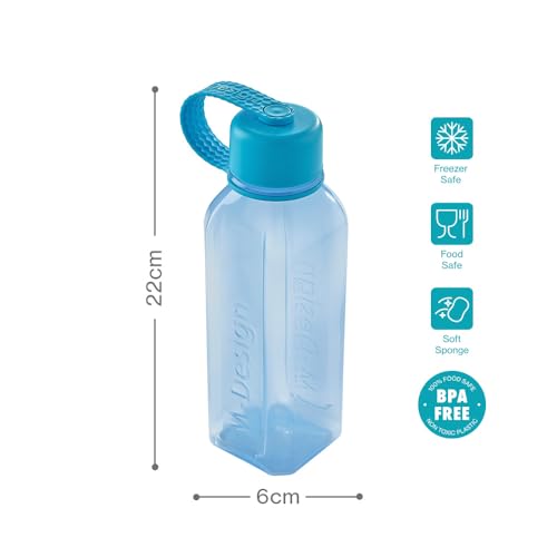 M-Design - زجاجة مياه - 0.65 لتر من ام-ديزاين - عبوة من 3 قطع - أزرق