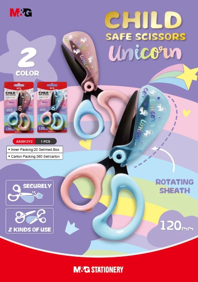 M&G - مقص شينجوانج اناك يونيكورن بيموتونج من ام اند جي، لون باستيل، 12 سم - رقم: ASS913Y2