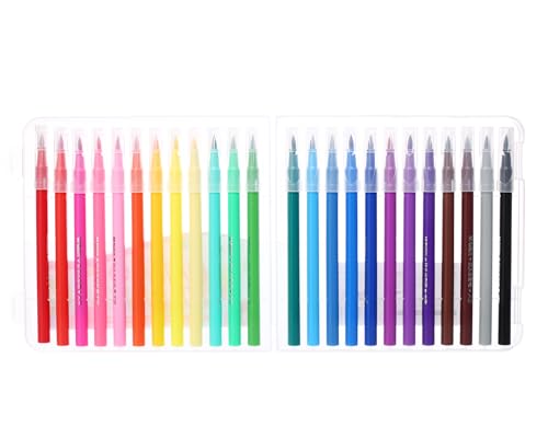- 24 قلم برأس فرشاة نابض بالحياة يوفر ألوانًا غنية للأعمال الفنية الإبداعية والاحترافية.